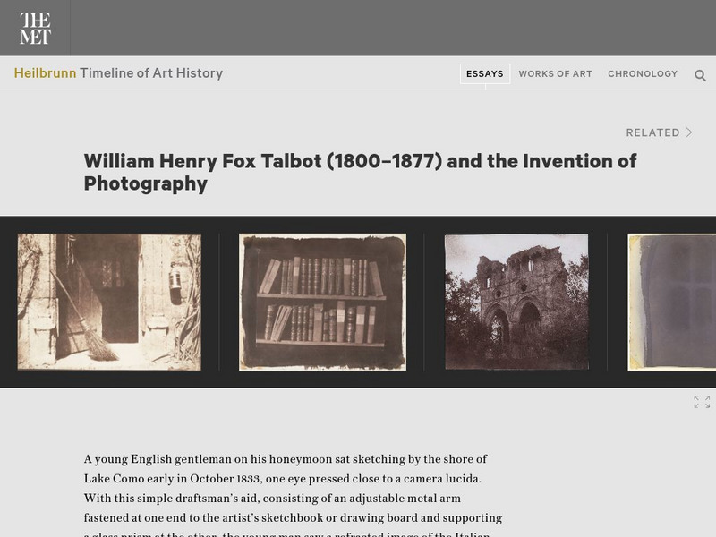 The Metropolitan Museum of Art provides this informative page on William Henry Fox Talbot(1800-1877)and the invention of photography. With information and pictures this in a nice resource for study.
