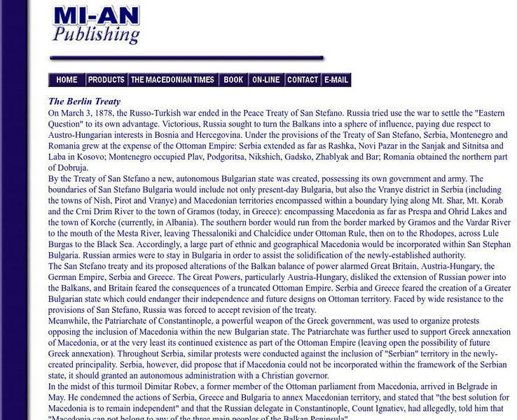 Describes in detail the outcome of the Berlin Treaty of 1878.
