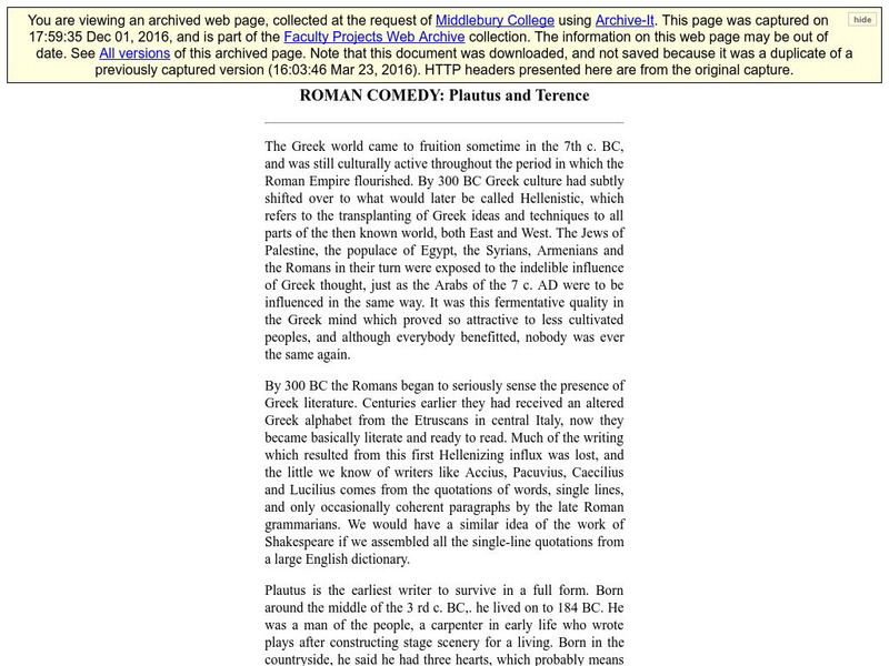 This essay explores the origins of ancient Roman comedy came about and its masters, Plautus and Terence, whose work still influences satire to this day.