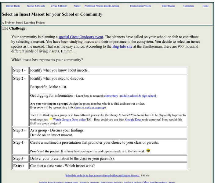 Based on a scenario given, students will work to nominate an insect mascot for the school or the community for an upcoming event. Students will conduct research through resources provided or their own, create a presentation, and vote for the best mascot.
