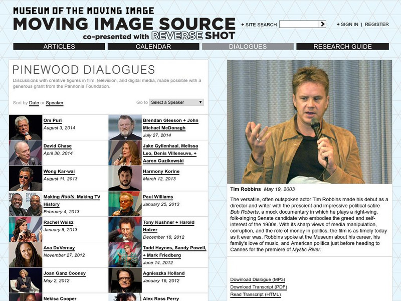 A conversation with film director and actor Tim Robbins, from a lecture series sponsored by the museum. Click the appropriate link to access the interview in audio format or with a text transcript.