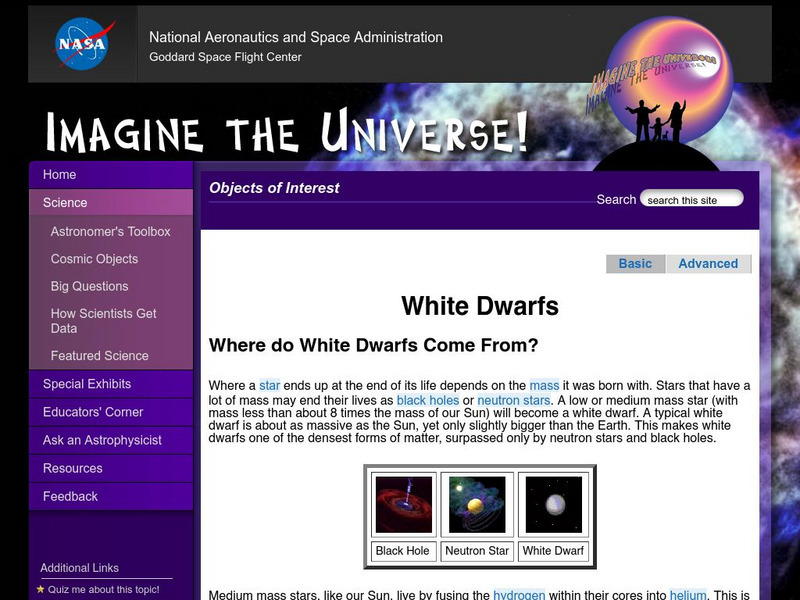 Brief description of white dwarfs with respect to their position in the life cycle of stars, the density of white dwarfs, the emissions of white dwarfs, and the temperatures associated with them.