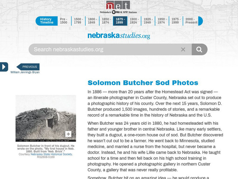This is a brief biography of Nebraska photographer, Solomon Butcher, made history when he traveled, photographed, and wrote about Custer County.