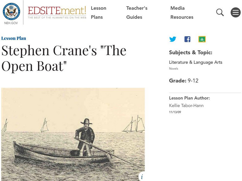 In this lesson, students will examine the relationship of man and nature as portrayed in "The Open Boat," based on Crane's suffering from a shipwreck on The Commodore in which he spent thirty hours on a small boat at sea before being rescued. After reading and studying the story, students are to write a brief essay considering how the third-person omniscient narrator enabled the author to relate this tale of tragedy and survival in the open seas. W.11-12.9a Amer Lit 18th,19th, 20th cen/Analy