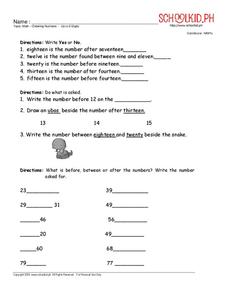 For this ordering numbers worksheet, students complete three pages of problems pertaining to comparing or ordering numbers. Kids write numbers that come before, between, or after a given number. Students also arrange lists of numbers from least to greatest.