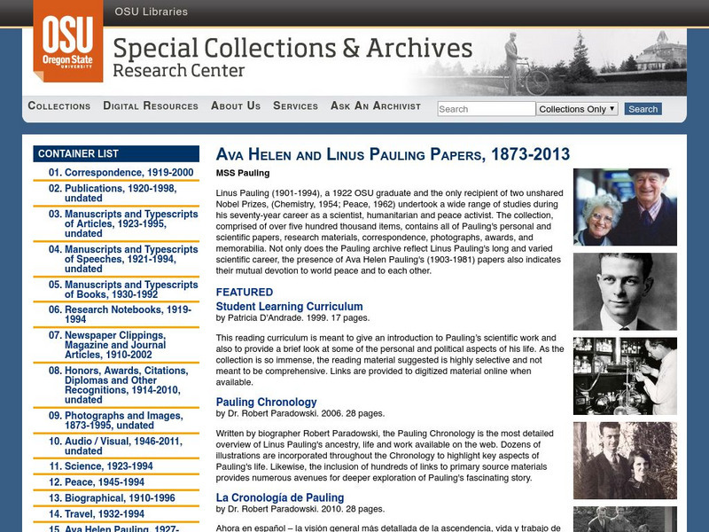 More than 500,000 items of Linus and Ava Pauling from their personal and scientific papers, as well as correspondence.