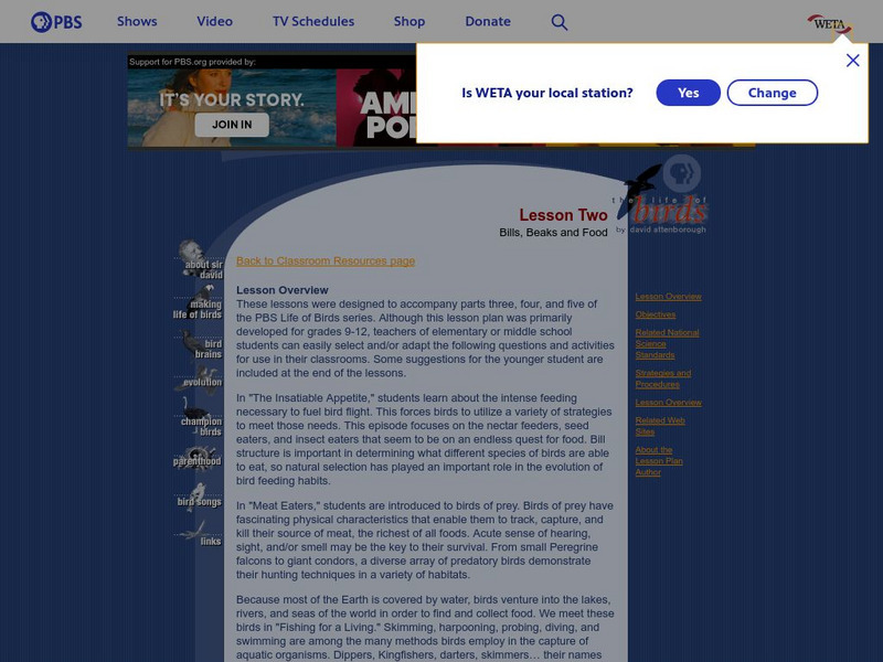 pbs, bills, beaks and food, pbs the life of birds, anatomical features that contribute to successful feeding, behavioral and physical characteristics, enable birds to obtain the food necessary to fuel their flight, how natural selection has influenced the evolution of bird bills, wings, talons, digestion and nutrition