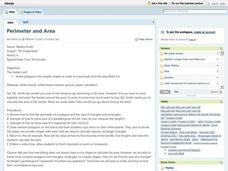 Seventh graders develop strategies for finding the perimeter and area of large geometric figures. Through lecture and guided practice, 7th graders practice the strategy of dividing a geometric shape into smaller more manageable shapes in order to find the area of the whole.
