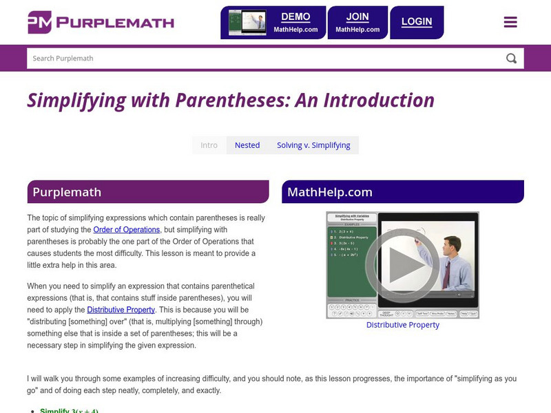 Explains, with worked examples, how to simplify expressions which involve parentheses and variables, including how to take a negative through the parentheses.