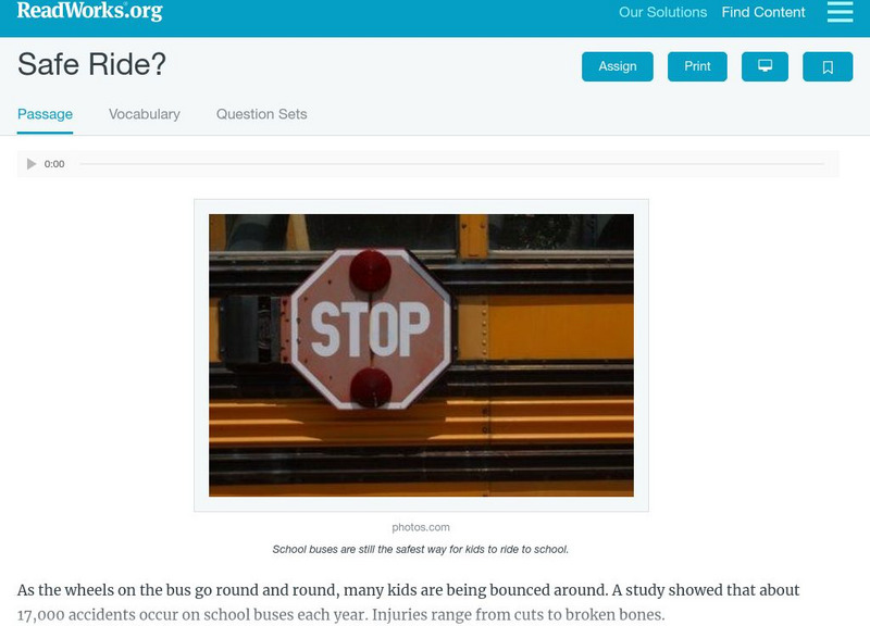 [Free Registration/Login Required] Students read about safety concerns on school busses. A question sheet is available to help students build skills in cause and effect.