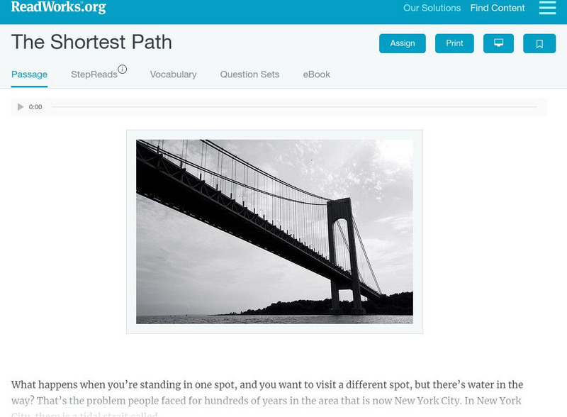 [Free Registration/Login Required] An informational text about the bridge built to connect Staten Island and Brooklyn, New York. A question sheet is available to help students build skills in reading comprehension.