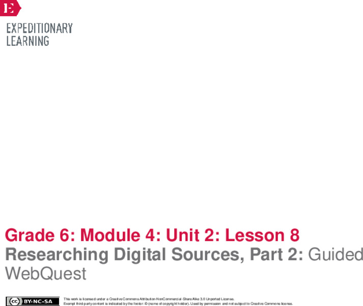 This Researching Digital Sources, Part 2: Guided WebQuest lesson plan also includes: