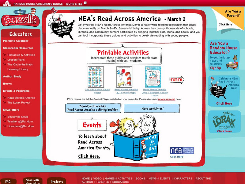 Dr. Suess Enterprises takes an active role in the Read Across America Initiative. This site provides links to classroom participation certificates, door hangers, and more. This site contains a good series of information to get you started.