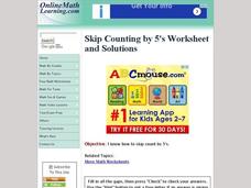 In this skip counting instructional activity, students skip count by the number 5 in each problem. Students complete 5 problems total on this instructional activity.