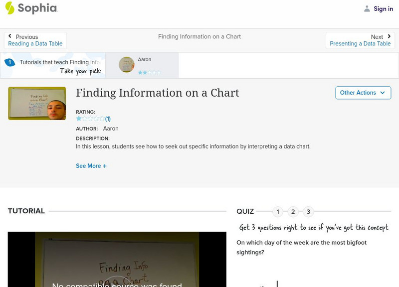 In this lesson, students see how to seek out specific information by interpreting a data chart. It is 2 of 7 in the series titled "Finding Information on a Chart."