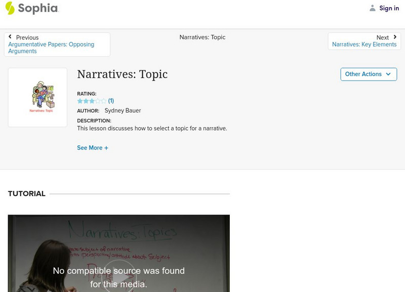This video tutorial discusses how to select a topic for a narrative and how to use a narrative in an essay. [7:59]