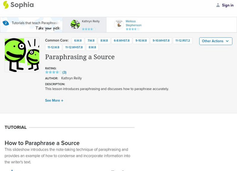 This lesson introduces paraphrasing and discusses how to paraphrase accurately. This tutorial lesson shares a short slideshow with the lesson's content.