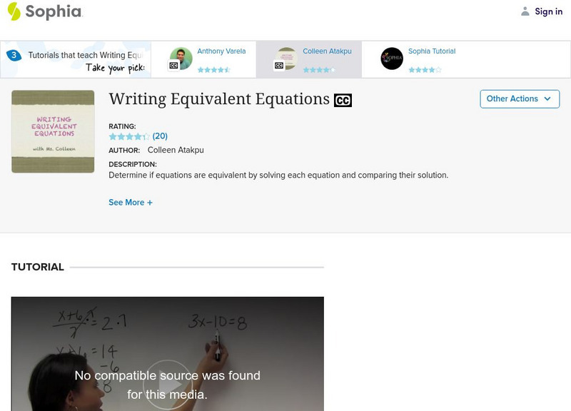 Explains what equivalent equations are and how to find out if two equations are equivalent. The video is accompanied by a downloadable transcript and quiz questions. [7:57]