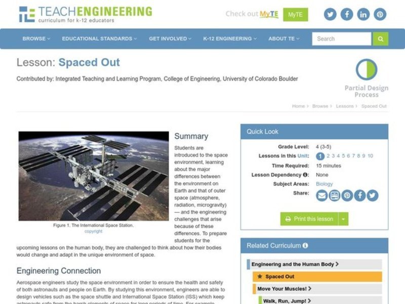 Young scholars are introduced to the space environment. This lesson covers the major differences between the environment on Earth and that of outer space and the engineering challenges that arise because of these discrepancies. In order to prepare students for the upcoming lessons on the human body, this lesson has young scholars has the students draw pictures of themselves as astronauts on a spacecraft.