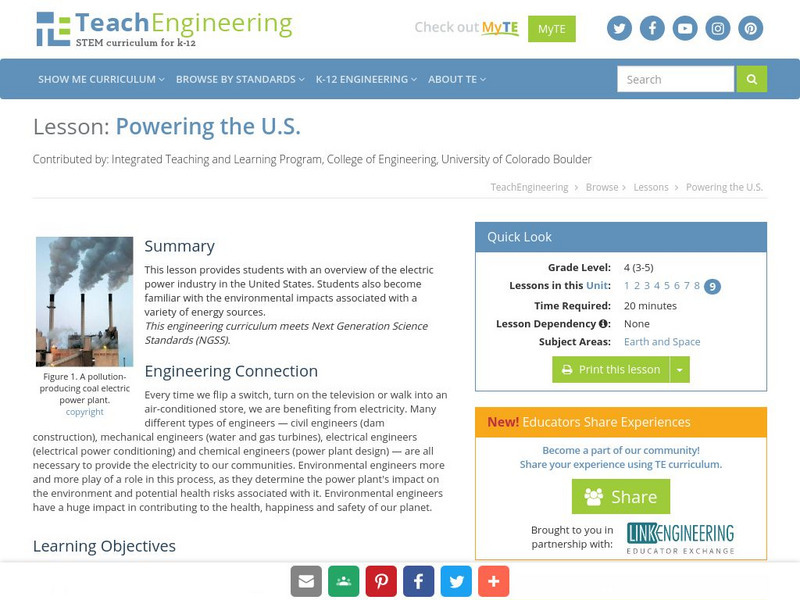 This lesson provides learners with an overview of the electric power industry in the United States. Students also become familiar with the environmental impacts associated with a variety of energy sources.