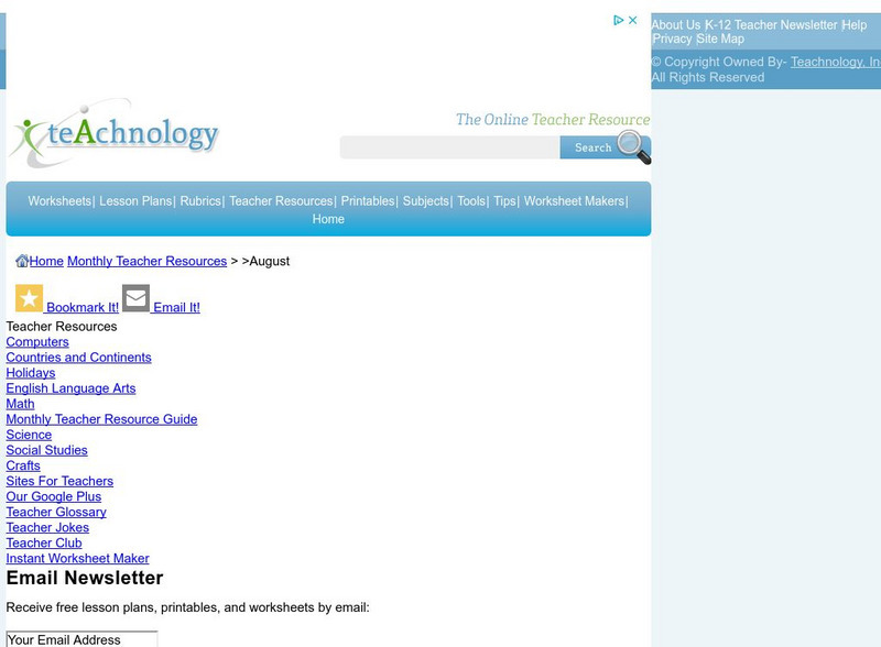 Utilize this excellent list of resources focused on August and the holidays, themes and events it encompasses to enhance classroom learning.