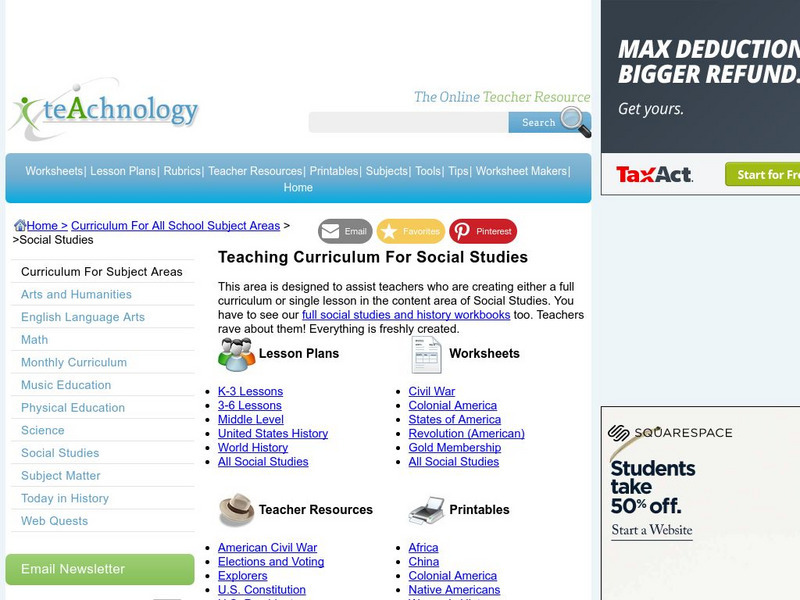 Comprehensive online resources designed for Social Studies teachers featuring lessons, worksheets, printables, and more using the latest in technology.