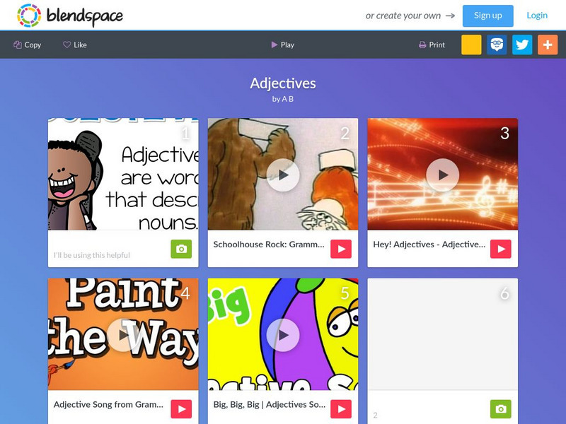 An eight-part learning module with links to images and videos about adjectives.