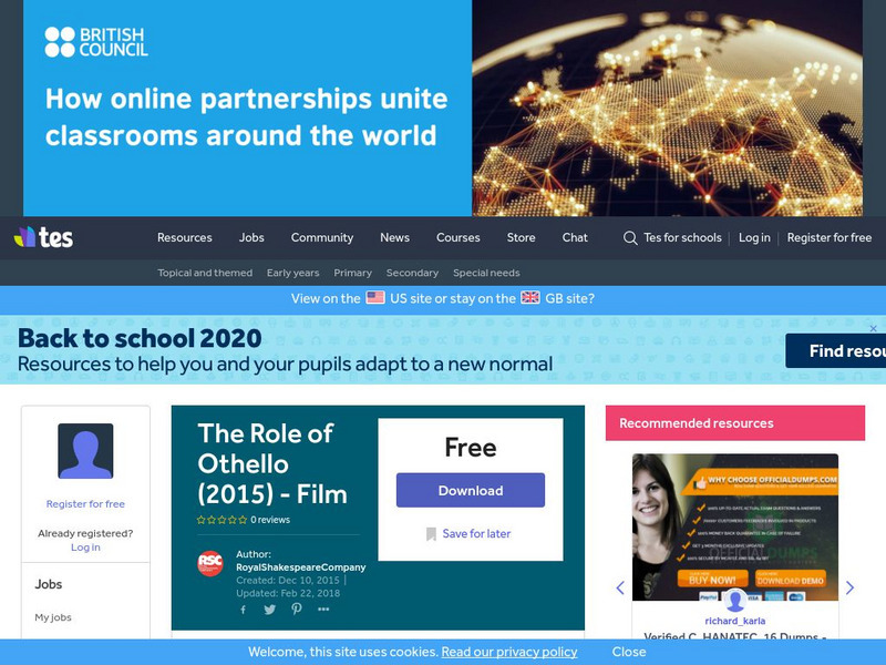 [Free Registration/Login Required] This video is Hugh Quarshie discussing the character Othello in the Royal Shakespeare Company 2015 production of Othello. [1:07]