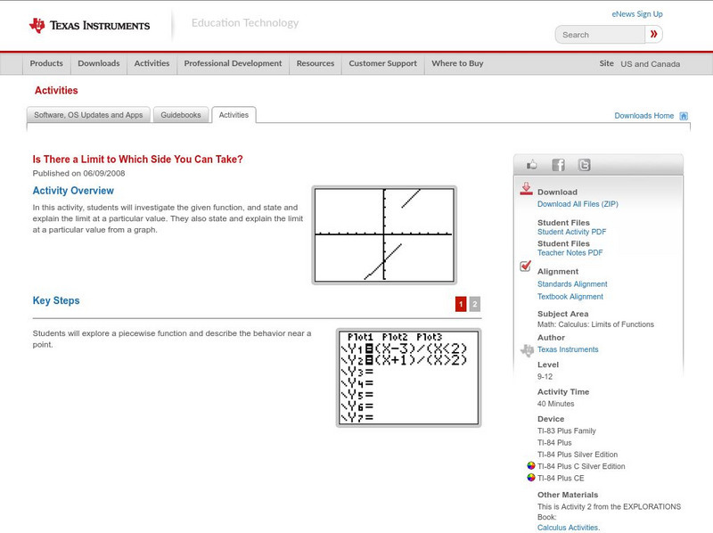 In this activity, students will investigate the given function, and state and explain the limit at a particular value. They also state and explain the limit at a particular value from a graph.