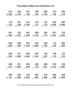 This Three-Digit Addition and Subtraction (H) worksheet also includes: