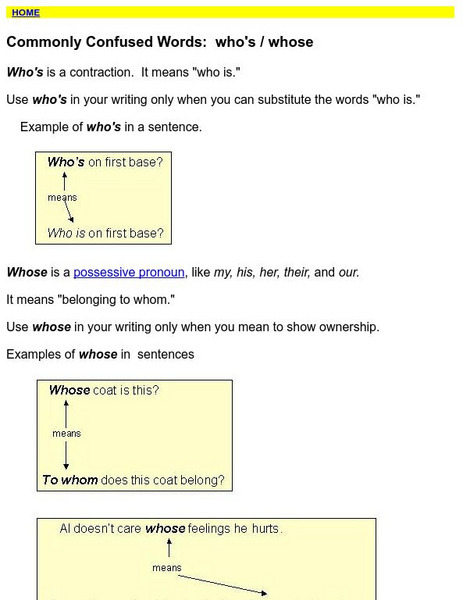 This entry focuses on the commonly confused words who's and whose including providing an explanation, examples, and a link to a quiz/exercise.