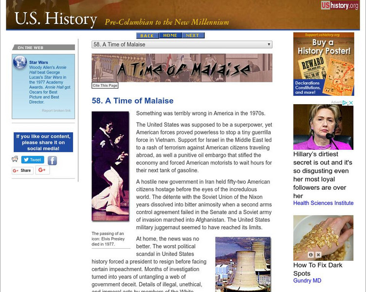 The decade of the 1970s brought a great deal of pessimism to the American public. Read about problems with the economy, foreign affairs, and the environment.