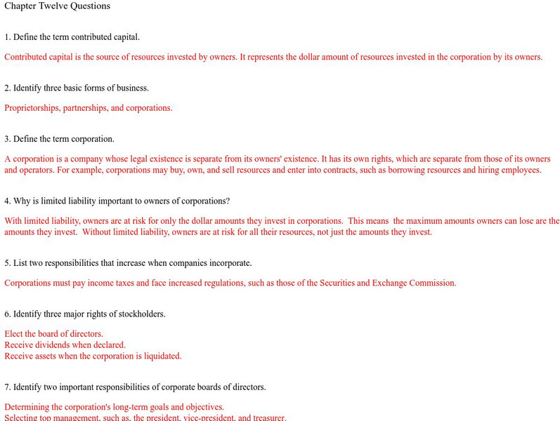 This site provides quiz questions and exercises, complete with solutions, that illustrate the transactions for stocks and dividends for a corporation.