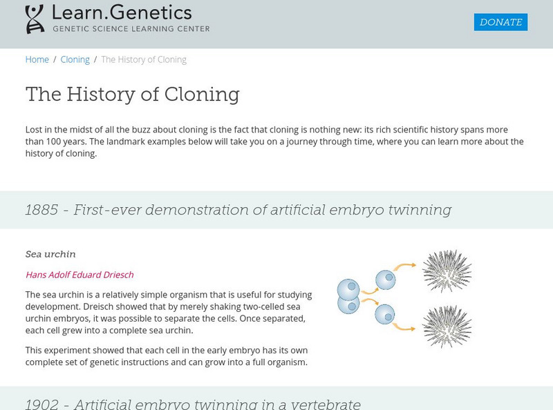 Interactive time line on the history of cloning over the last one hundred years. Includes detailed explanations and short animations.