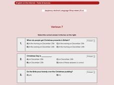 In this vocabulary review #7 - Christmas worksheet, students interactively complete 10 sentences about Christmas by selecting the correct phrase with immediate online feedback.