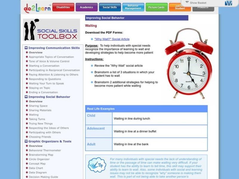 Waiting can be hard for everyone, but for individuals with autism or other special needs, it can be confusing and frustrating. Lead a discussion in which students brainstorm times in their lives when they would need to wait, and help them come up with strategies to get through those moments as calmly as possible
