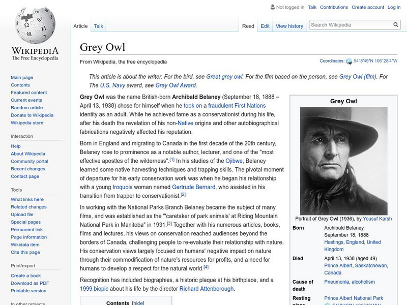 Credited both as a writer and conservationist, Grey Owl (aka Archibald Belaney) made a career promoting environmental causes and nature conservation. Although he was extremely popular prior to his death, afterwards this was not the case. Following the printing of information that he was not actually a Native American at all, publication of some of his books rapidly ceased. The study of Grey Owl is an excellent way to examine how an important and relevant message can be lost in the face of controversy. Links to articles written by Grey Owl are available here.