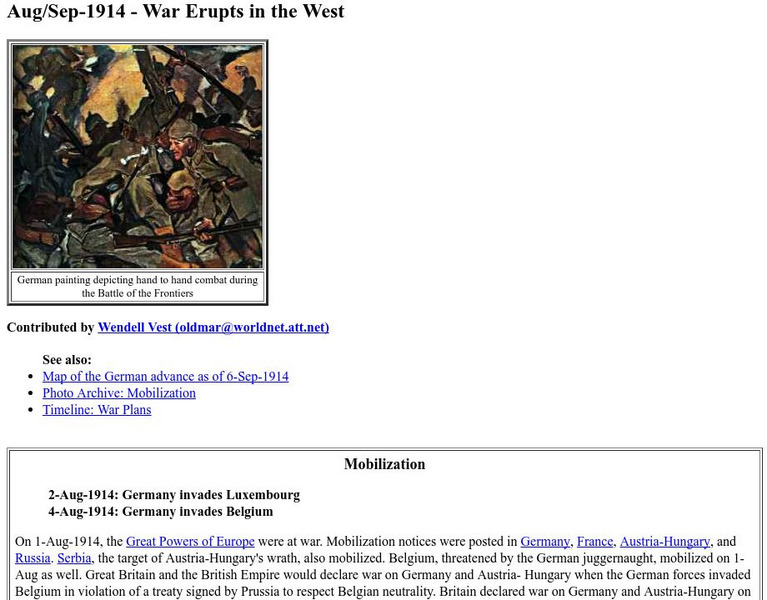A timeline and discussion of the beginning of conflict on the western front, concluding with the First Battle of the Marne.