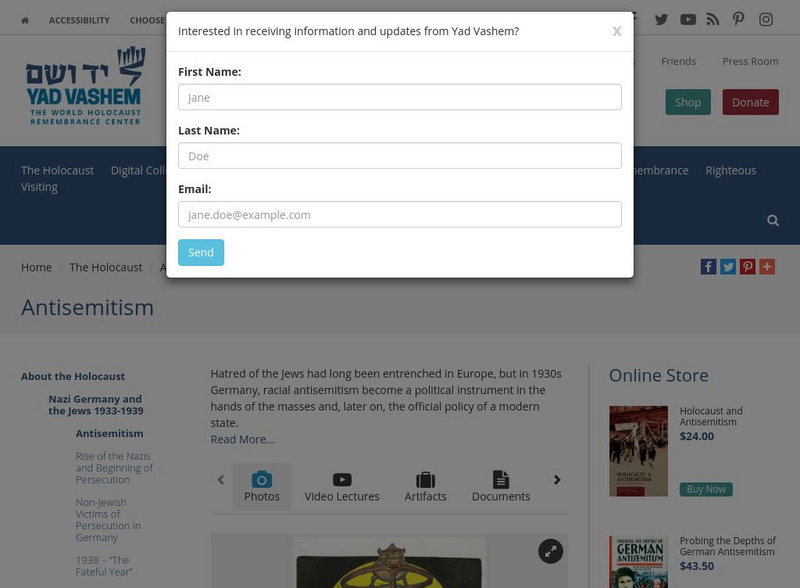 Anti-Semitism has roots that are entrenched in Europe. However, not until Hitler was anti-Semitism an official policy of a state. Read a synopsis of anti-Semitism through time and view primary resources such as photos, video lectures, artifacts, and documents.