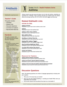 Teach kids in grades 3 through 5 about health problems with a collection of 11 lessons that cover issues related to physical health (alcohol, tobacco, and drugs), emotions and behavioral health (bullying, sadness, and stress), as well as infections, diseases, and other conditions (asthma, colds and flu, concussions, diabetes, eating disorders, food allergies, and obesity). Each lesson contains a teacher’s guide, handouts, a quiz, and an answer key for the quiz. Posters, links to readings, and infographics are also included.