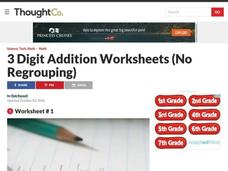 In this additiion instructional activity, students solve a total of 25 problems using 3-digit numbers without regrouping. A website reference for additional resources is given.