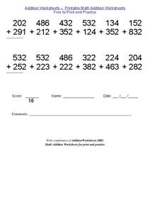 In this addition activity, 3rd graders add three digit numbers to one and two digit numbers without regrouping. Students complete 40 problems.