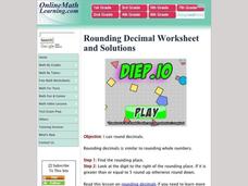 In this interactive rounding worksheet, 4th graders practice rounding decimals to the given place value. There are 10 rounding problems to complete.