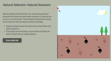 Can natural disasters alter natural selection? The interactive explores this concept with mice living through a forest fire. As the environment changes, the camouflage also changes. How does this one disaster impact future generations?