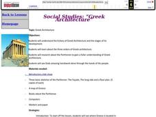 Students explore the Parthenon. In this lesson on Greek Architecture, students view a video on classical architecture, then split into groups to research assigned architectural elements such as capitals, columns and floors. They then...