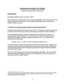 More asthma attacks happen at higher altitudes, but why? Scholars complete worksheets, learning about homeostasis and feedback related to breathing. Then, they work in small groups to experiment with breathing in limited amounts of...
