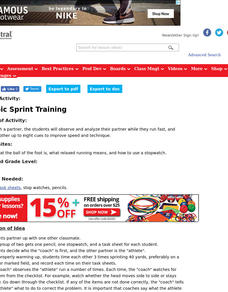 Students observe and analyze their partner while they run fast, and teach each other up to eight cues to improve speed and technique.