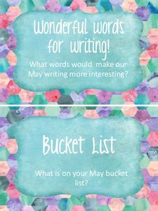 Twenty slides make up a set of festive, May-themed writing prompts designed to grab scholars' attention and warm-up their writing skills. Prompts include story starters, holidays, research questions, the five senses, and more!