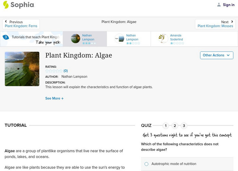 Sophia: Plant Kingdom: Algae: Lesson 3