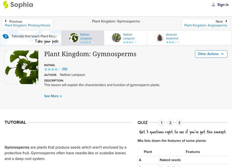 Sophia: Plant Kingdom: Gymnosperms: Lesson 3